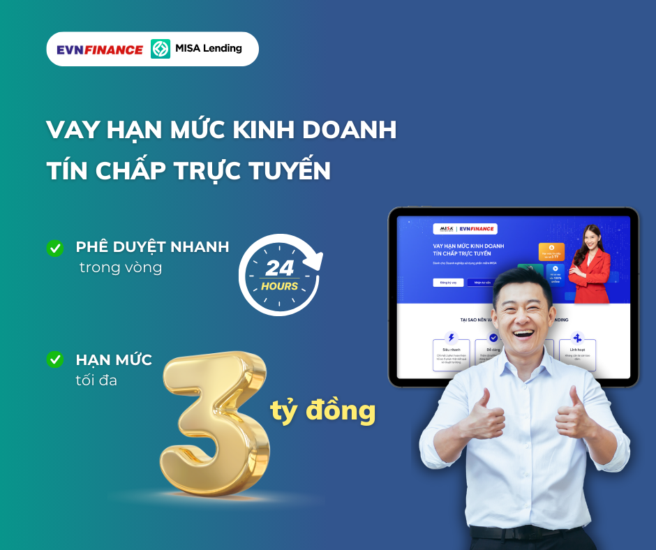 Gói vay hạn mức kinh doanh tín chấp trực tuyến EVNFC không chỉ đáp ứng nhu cầu vốn nhanh chóng mà còn mang đến sự tiện lợi và linh hoạt tối ưu cho doanh nghiệp của bạn. Hãy đăng ký ngay hôm nay để tận hưởng những lợi ích vượt trội này!