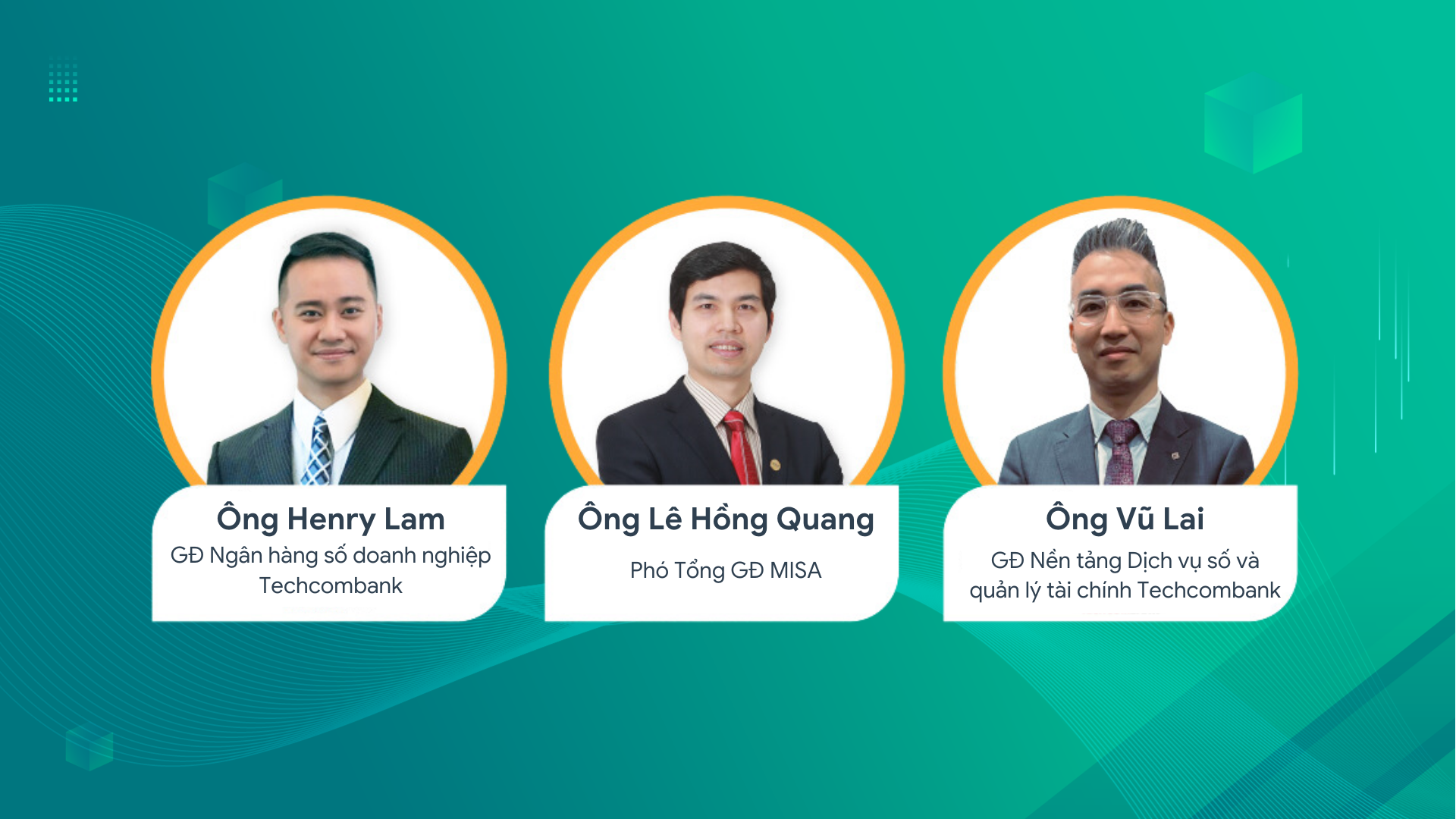 Đồng hành cùng MISA trong webinar, Tiến sĩ Henry Lam – Giám đốc cao cấp Ngân hàng số Techcombank và Ông Vũ Lai – Giám đốc phát triển giải pháp – Nền tảng dịch vụ số và quản lý tài chính Ngân hàng Techcombank đã chia sẻ các giải pháp giúp doanh nghiệp SME tăng trưởng trong thời kỳ chuyển đổi số.